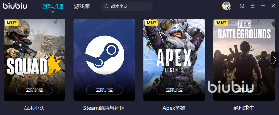 既然要用加速器,自然是要选择一款给力的了,小编给大家推荐的是biubiu加速器,对于像战术小队这样的steam游戏,它可以有效提高游戏过程中的网速,让大家用流畅的网速一口气玩到下机。