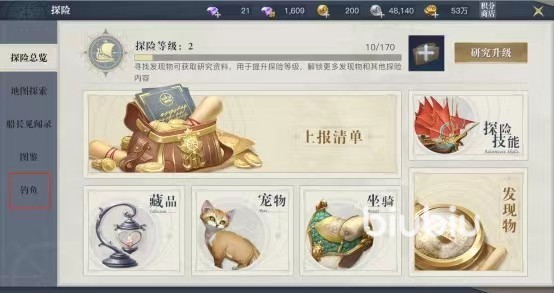 钓鱼玩法需要玩家升级解锁探险的游戏序章后才能参与,在主界面上还有各种鱼类、渔具的图鉴,可供玩家慢慢的收集参考。