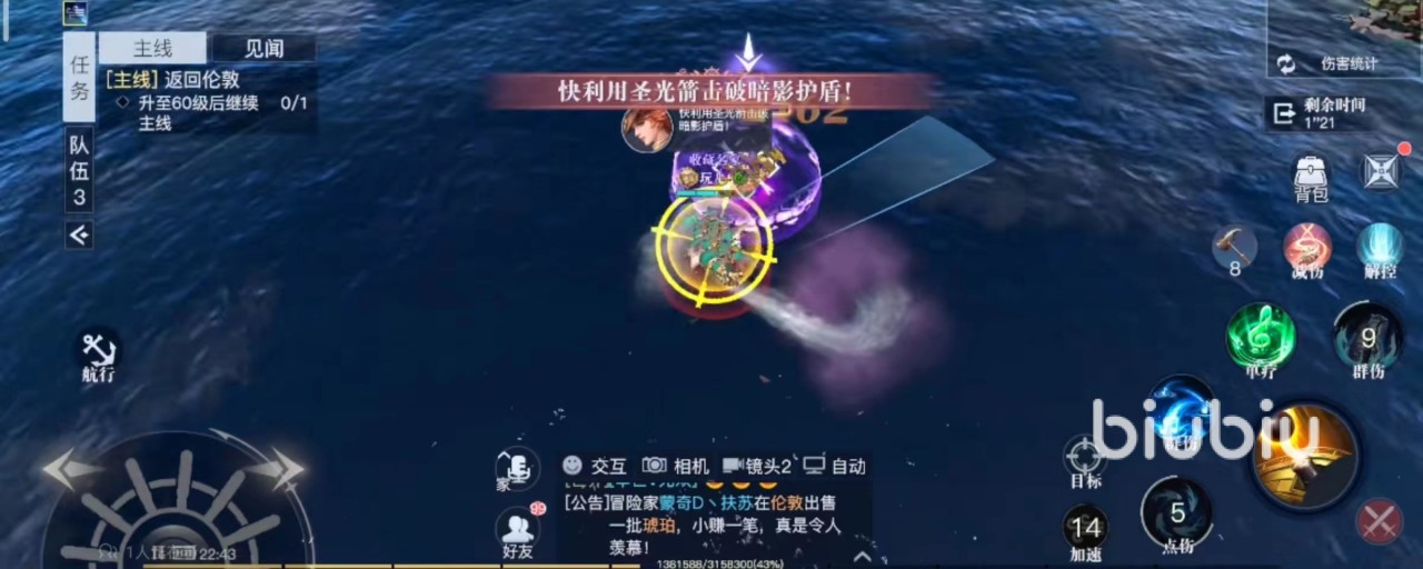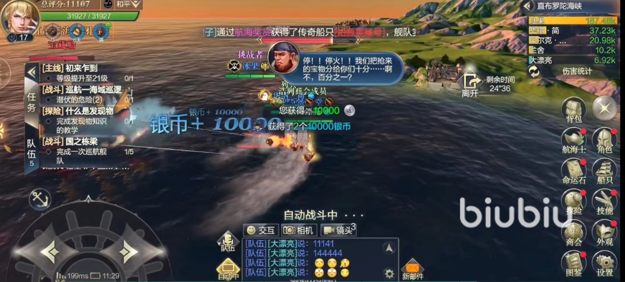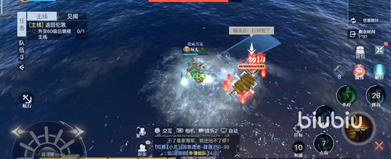 打怪的时候玩家一定要手动操作,海域霸主BOSS北大西洋联合舰队的技能非常厉害,其中一个可以选择全体敌人,这个技能无法被规避,此时玩家就需要手动使用减伤的技能来抵挡伤害。还有一个技能海域霸主会召唤非常密集的陨石雨,算是伤害非常高的一个AOE技能,这时候玩家就需要把船开出技能区域,再次抛锚。
