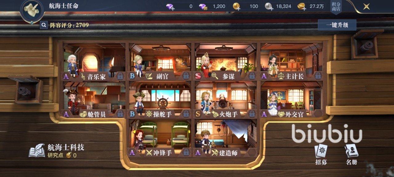 如果暂时无法获得高等级战舰,那么可以通过航海士的任命来提高船只战力,航海士职位主要分为参谋,外交官,火炮手,操作手,冲锋手,建造师等10个不同的职位。每一个职位都可以安放一名航海士,可以提高相应的属性,例如火炮手职位,可以提高船只攻击力、船只耐久,和船只防御等属性。影响这些属性的因素,除了有航海士的等级外,品质和星级也非常重要,高品质的航海士拥有多个技能,通过升星就能解锁这些技能。