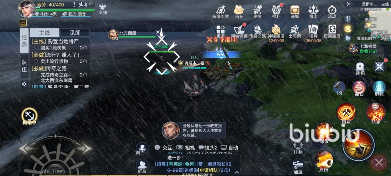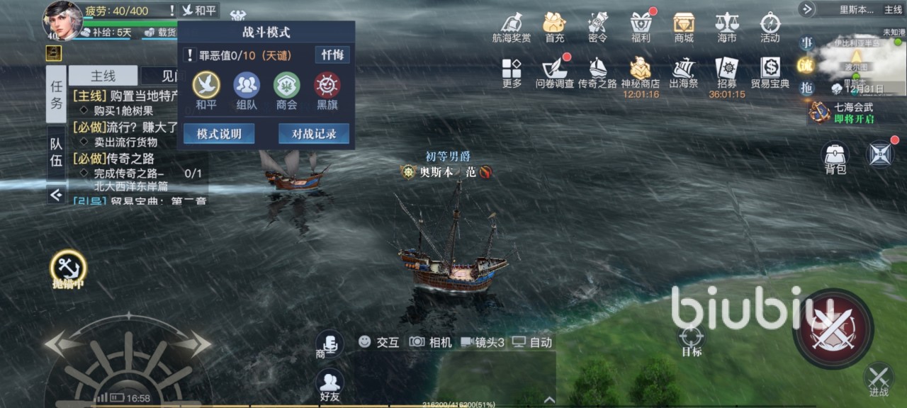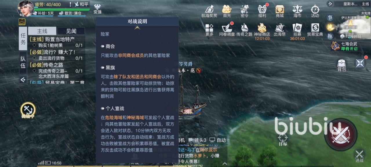 而一旦选择了黑旗,那么可以攻击除了队友和商会成员之外的所有冒险家,并且可以掠夺他们船上的货物。也就是其他的模式只能触发战斗,而黑旗在战胜之后能够获得战利品。如果击败的是商船,那么可以获得50件携带的货物以及威名和船只补给奖励,同时自身也会被挂上悬赏名单,如果击杀的是其他的冒险家,可以获得更多的威名。