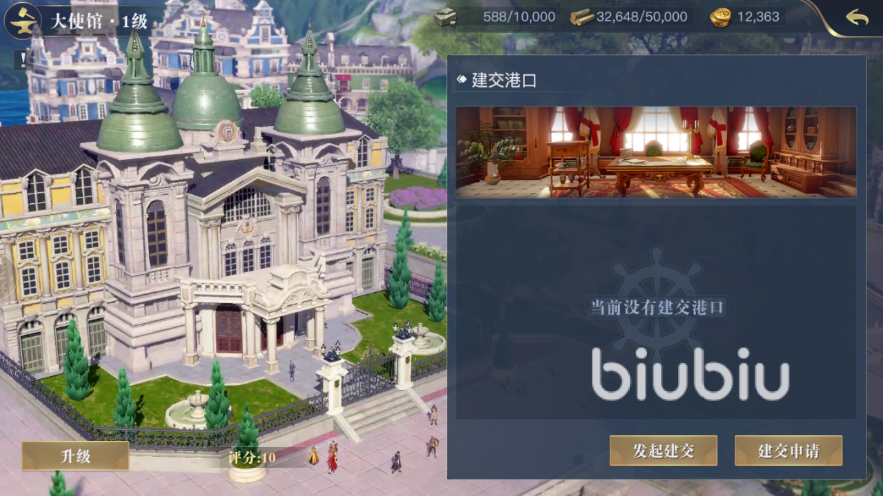 教堂在这里面属于比较鸡肋的一种,虽然可以和好友们互动并且获得一些祝福奖励,不过收益与投入不成正比,后期资源充足了之后再升级就可以。大使馆的作用是和其他冒险家建交,建交之后可以利用其他人的港口进行拖航。对于喜欢跑图的人来说非常方便,节约了大量跑路的时间。如果有这方面的需求,可以优先建造。