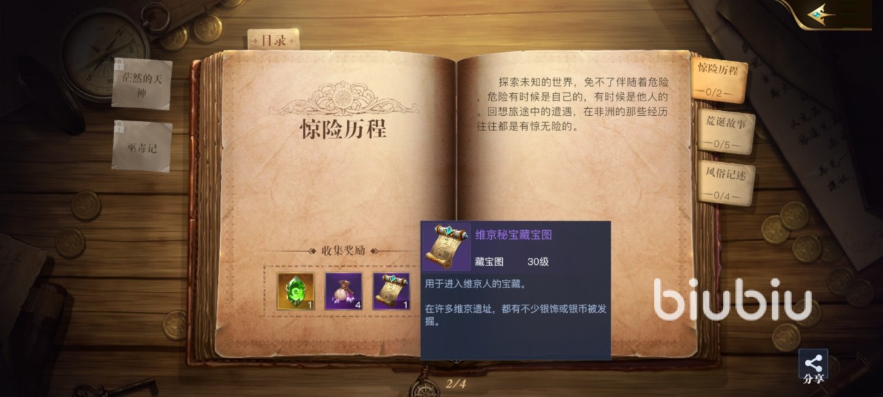 地图探索也是探险玩法的一部分,通过在不同的海域进行航行就能够完成探索度,只要达到规定的探索度就可以获取丰厚奖励。除了这三个途径外。在福利功能中通过签到可以获得藏宝图,另外还有其他一些活动奖励也会有藏宝图赠送。