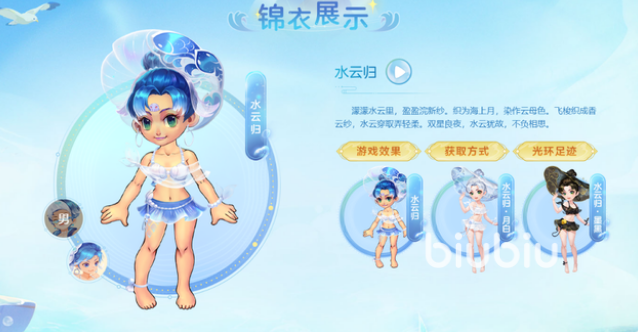 赠送的礼盒需要在9月27日前找到七夕仙娥领取哦,这套锦衣名为“水云归”,售价是3600仙玉的礼盒内开出,除了这款锦衣之外,礼盒还可以开出1个光环“月半潮”及1个足迹“风卷浪”!都是很珍贵的存在,另外,除了这个套餐之外,游戏内还会有其他的月白、墨黑套餐,全部获取需要21600仙玉,可以直接获取三套华丽的服饰,这些服饰的价值也是很高的。