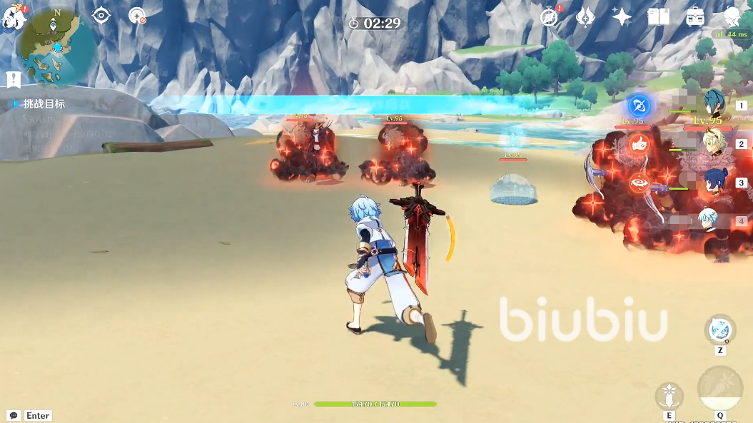 1、鏖战关卡解析:不要着急去清理小怪,因为这个不是主要的目标。这一关触发强敌的条件为使用元素6次,因此玩家需要需用充能效果更高的。