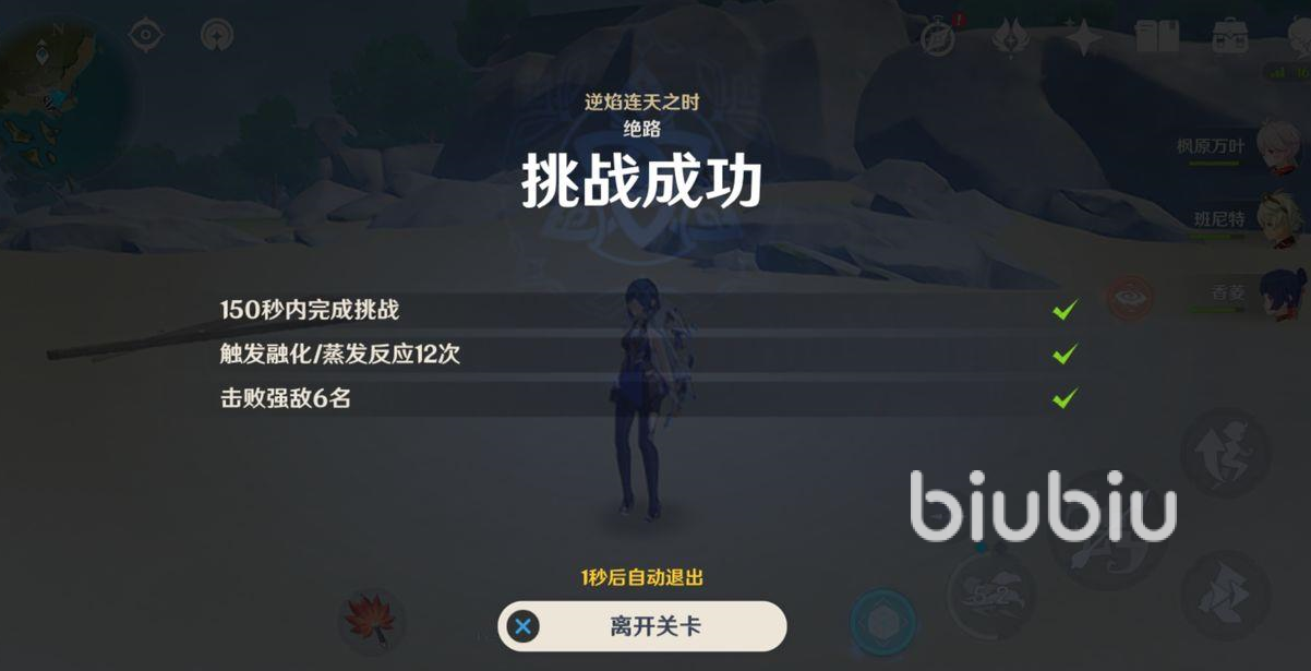 2、绝路关卡解析:和上面的有一些相似之处,不要着急去清理小怪,因为这个不是主要的目标。这一关触发强敌的条件为使其12次化掉或者是蒸发,因此需要带一些火元素输出强的的角色。水元素角色也是可以带的,用来提升整体的效率。