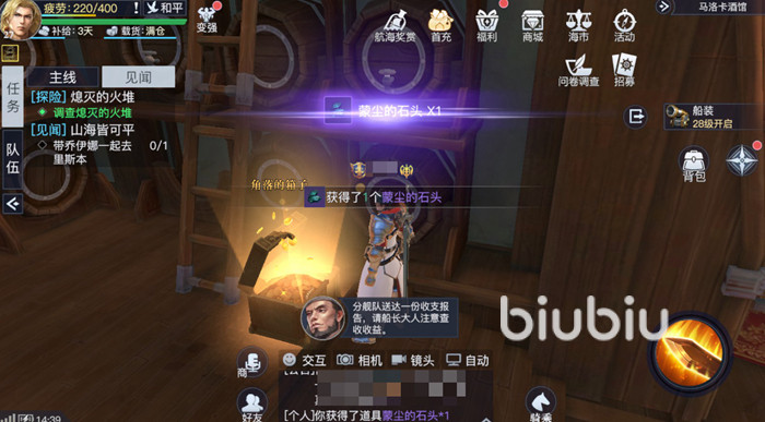 在马洛卡这个区域场景内一共有两个隐藏宝物,想要找到这两个隐藏宝物的位置还是比较困难的,但是查看今天小编分享的攻略之后,就能够轻松获取这两个隐藏的宝物了。第一个宝物在酒馆场景内,酒馆的位置就在码头传送的东北面多一点。进入酒馆之后我们往左边方面走,在这里可以看到角落的箱子,打开之后就可以获取第一个隐藏道具蒙尘的石头。