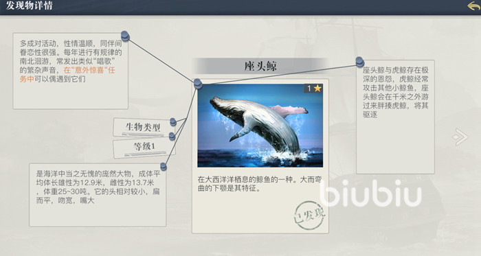 第二个条件就是需要我们达成一个主线任务叫做意外惊喜。在成功通过这个主线任务之后地图上就会刷新出座头鲸,此时我们就可以前往相应的位置进行抓捕了。大家在探索这款海域的时候,集中栖息在阿尔沃兰海东北方,瓦伦西亚偏南方的这一块是比较多的。
