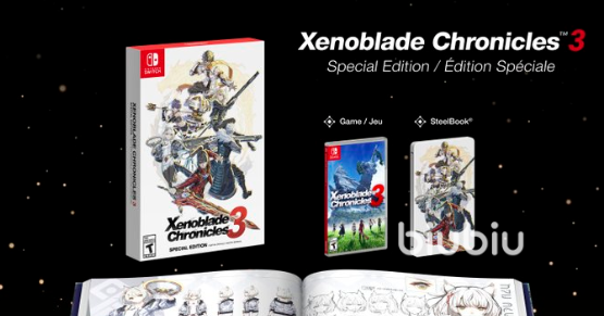 《异度神剑3》限定包含游戏软件本体,游戏角色设计师斋藤将嗣绘制的艺术包装盒,超过250页的全彩概念艺术书以及游戏收藏铁盒。