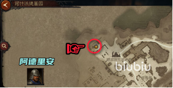 4、阿德里安位于阿西拉王后之墓左下角位置如下方图红色圈位置,位于埋骨堂左上角。