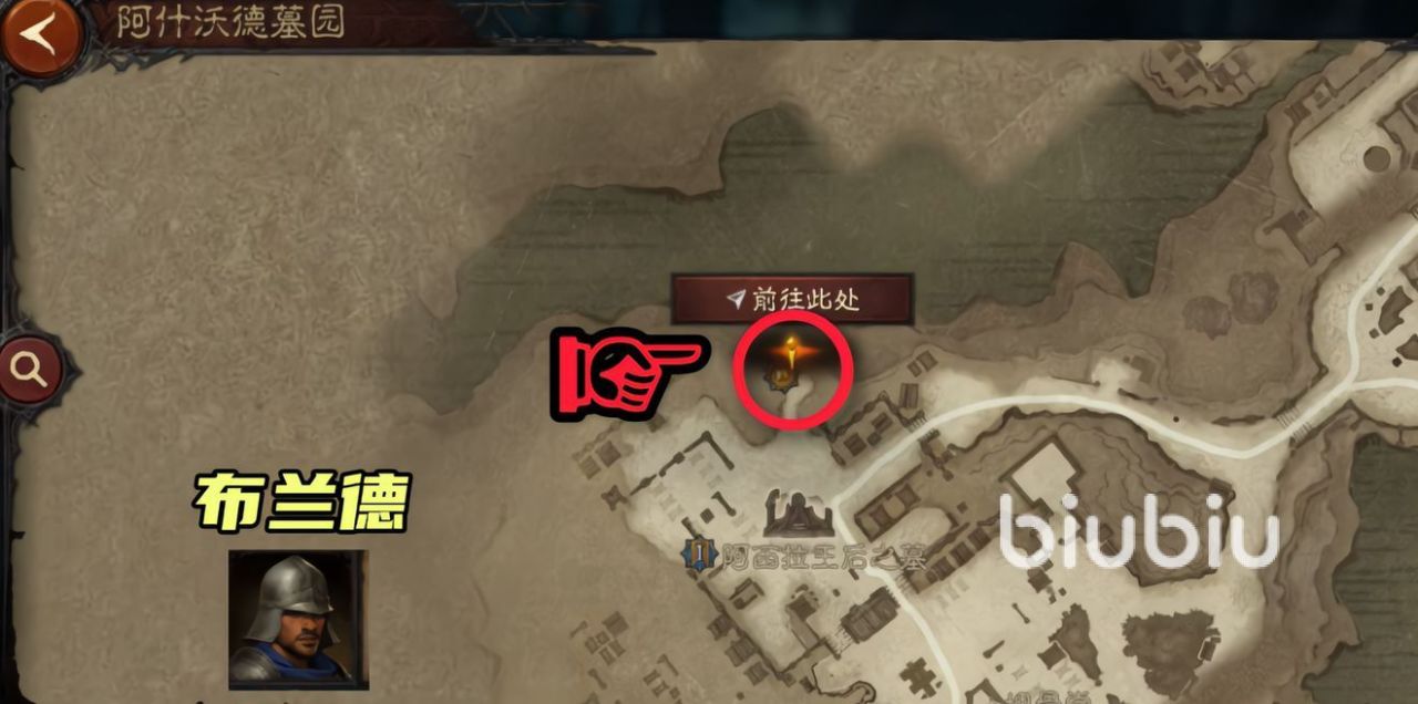 3、布兰德位于阿西拉王后之墓正中间上方位置如下方图红色圈位置,位于埋骨堂上方。
