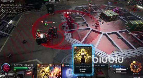 此外在对局内奇异博士还可以为自身或者是其他队友提供一个隐匿的效果,如果进行升级强化,在隐匿期间还可以额外进行治疗和加速,并且减少英雄卡牌的消耗。