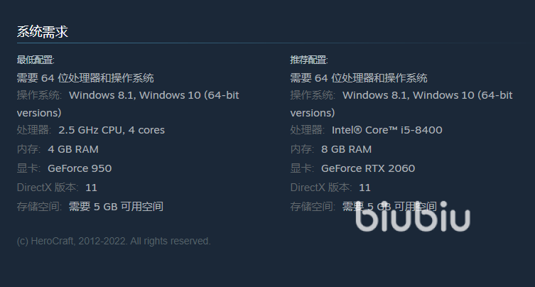 64位的处理器和操作系统没什么区别,处理器最低英特尔i5-8400,运行内存最低8gb,显卡推荐使用GeForce RTX 2060,仍然5~10gb的可用内存空间。