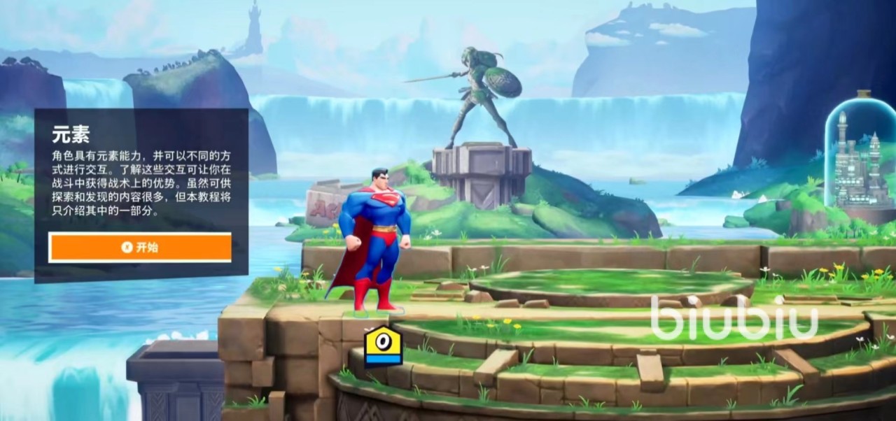 游戏中部分英雄具有不同的元素,元素之间可以产生交互,比如玩家使用超人时用无方向+Y可以熄灭驯狗的火墙。