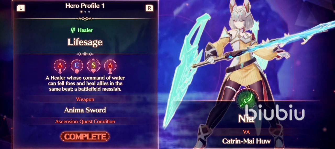 游戏内玩家们深受认可的一个女主角,在游戏内的剧情中和主角诺亚发生着不一般的爱情故事,主要负责的是安格努斯的送行者,性格方面的话比较温顺,而且做事比较认真,使用的双环武器攻速特别的快,所以在剧情故事中也受其他同伴的信赖。