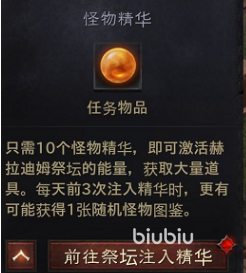 9、怪物精华就可以激活先祖之路,获得大量道具,每天注入3次,还有机会获得1张随机的怪物图鉴。
