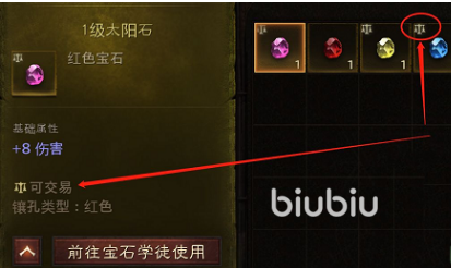 5、宝石可以在背包查看能否交易,值钱的宝石就拿去拍卖,注意一点就是交易宝石被使用了,就无法交易了。