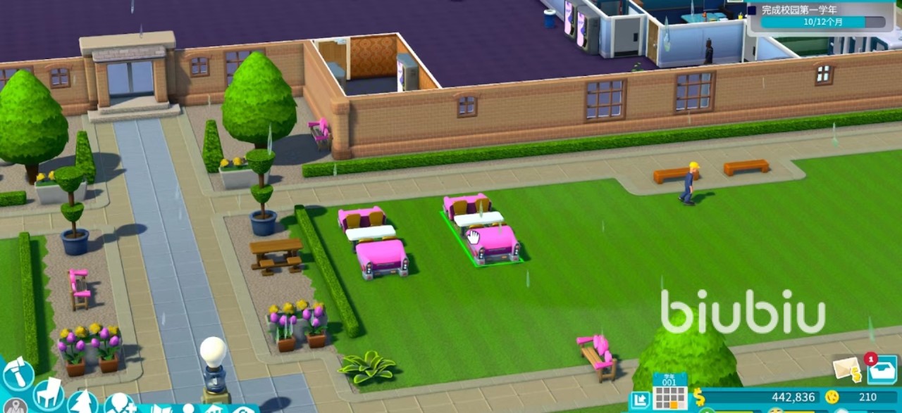 游戏的主题是学校,游戏开局只给到了玩家一个学校的空场地,具体学校内怎么建设、布置,都由玩家开决定。此时玩家只用点击有界面下面的锤子,即可打开建造菜单,菜单里有各种各样的建筑设施,并且建筑的面积,建造条件都列举的非常清楚。只要条件满足,玩家点击它即可看到一个模型,然后带着模型在学校的区域内建造即可,并且玩家可以设定建筑的朝向。不同的建筑都有着各自的作用,并且建造好后玩家还可以在建筑里布置设施、家具,一些建筑还需要搭建必要的家具。