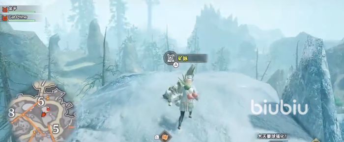 大家采集完毕之后可以去右手边的山顶上面,这里大家使用翔虫技能直接飞过去就行了,爬到上面有冰的那个小平台可以采集到第二个矿石。然后大家再跳下山崖,在右边的山尖那里可以获得第三个矿石,小伙伴们可以在空中使用翔虫直接飞过去。