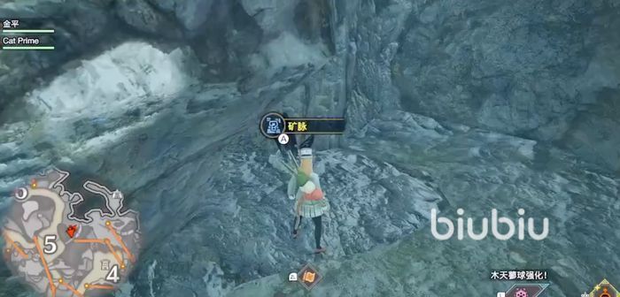 然后大家回头爬山,可以看到山中部位有个木头搭起来的矿洞,这里面大家进去之后可以拿到第四个矿点,总的来说这个地图三色矿石还是比较多的,小伙伴们按照上面的路线多走几次就可以了,打造武器消耗的素材也不是太多。