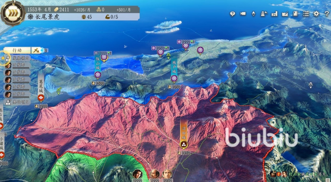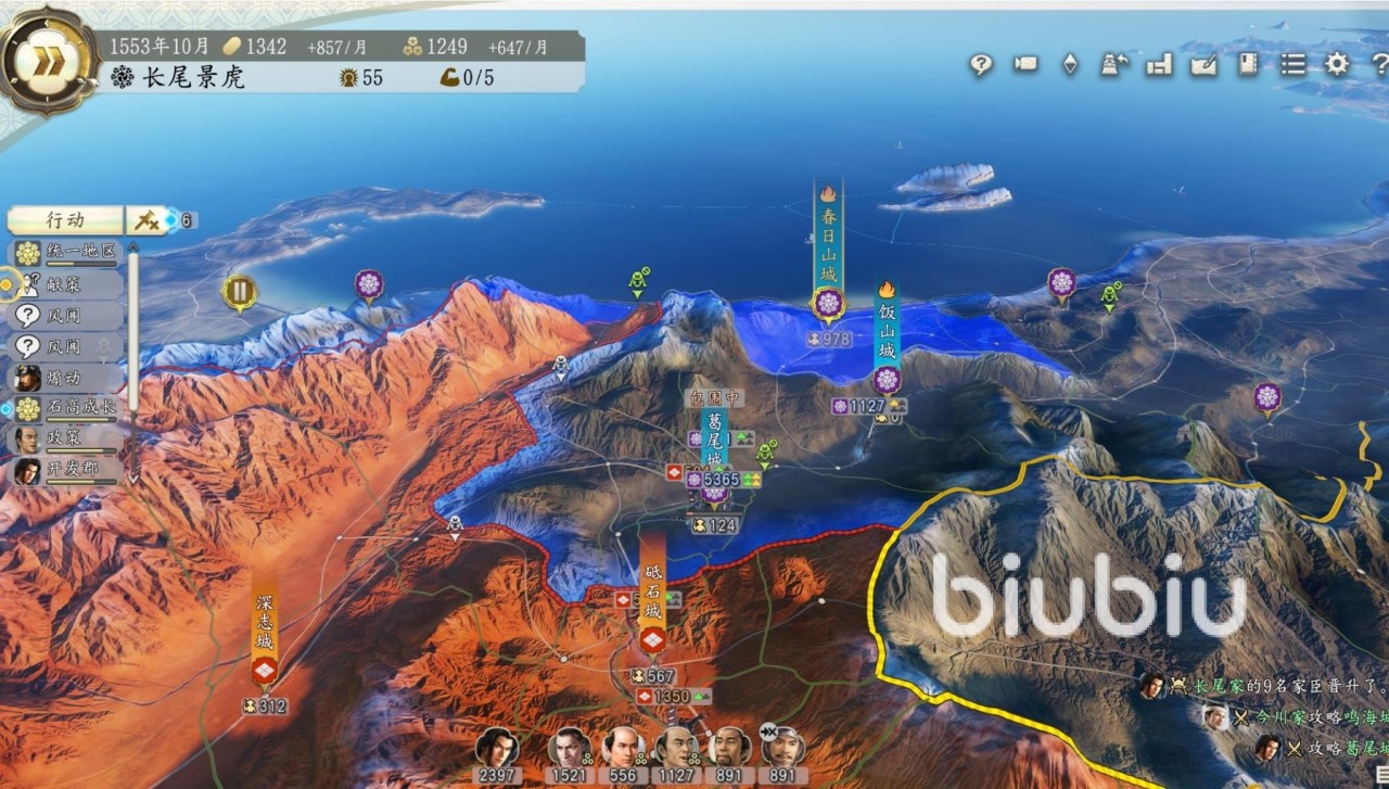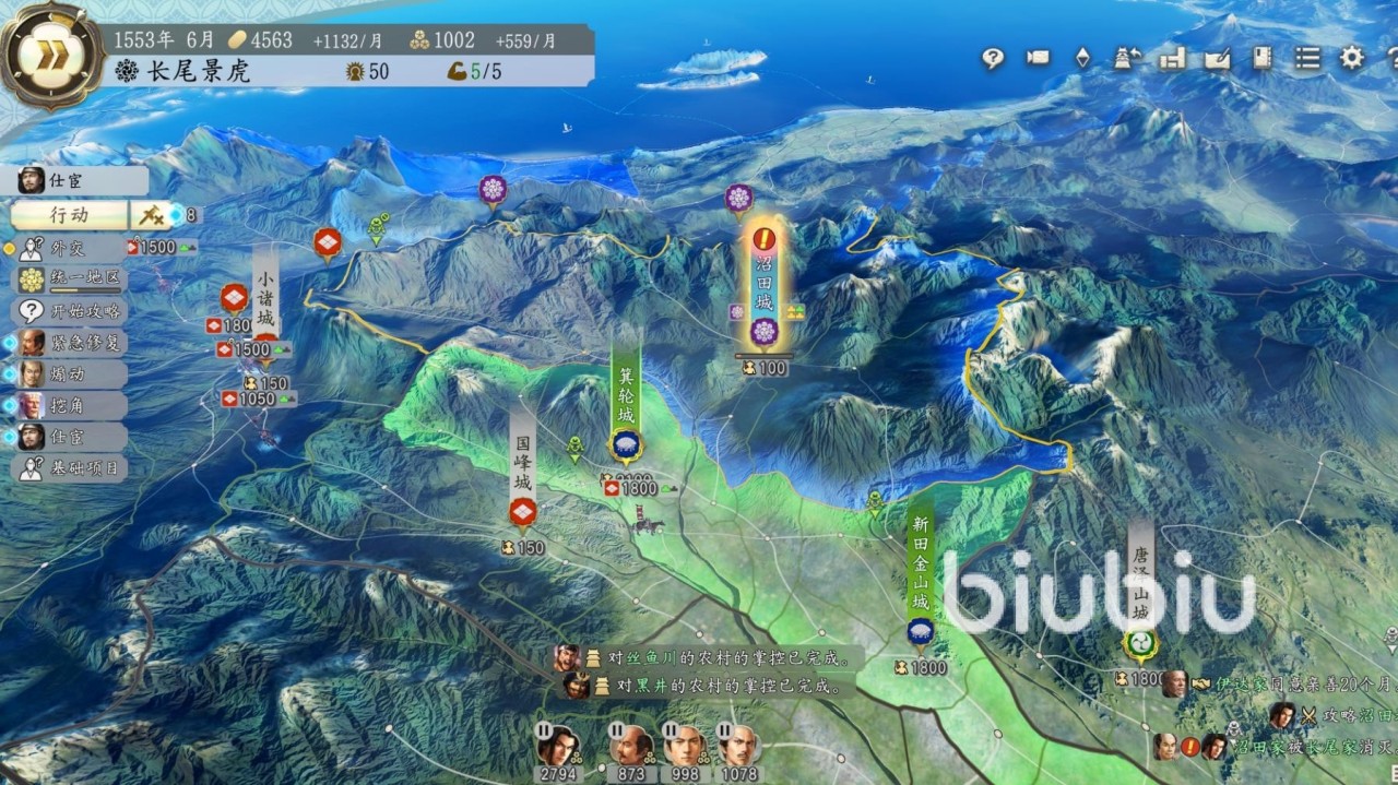 回到家之后将行知分配一下,剩余的武将集合,等到春日山恢复2000人之后就可以正式出发了。将葛尾拿下来之后根据自己的粮食状况,如果不够了那么直接下令撤退。