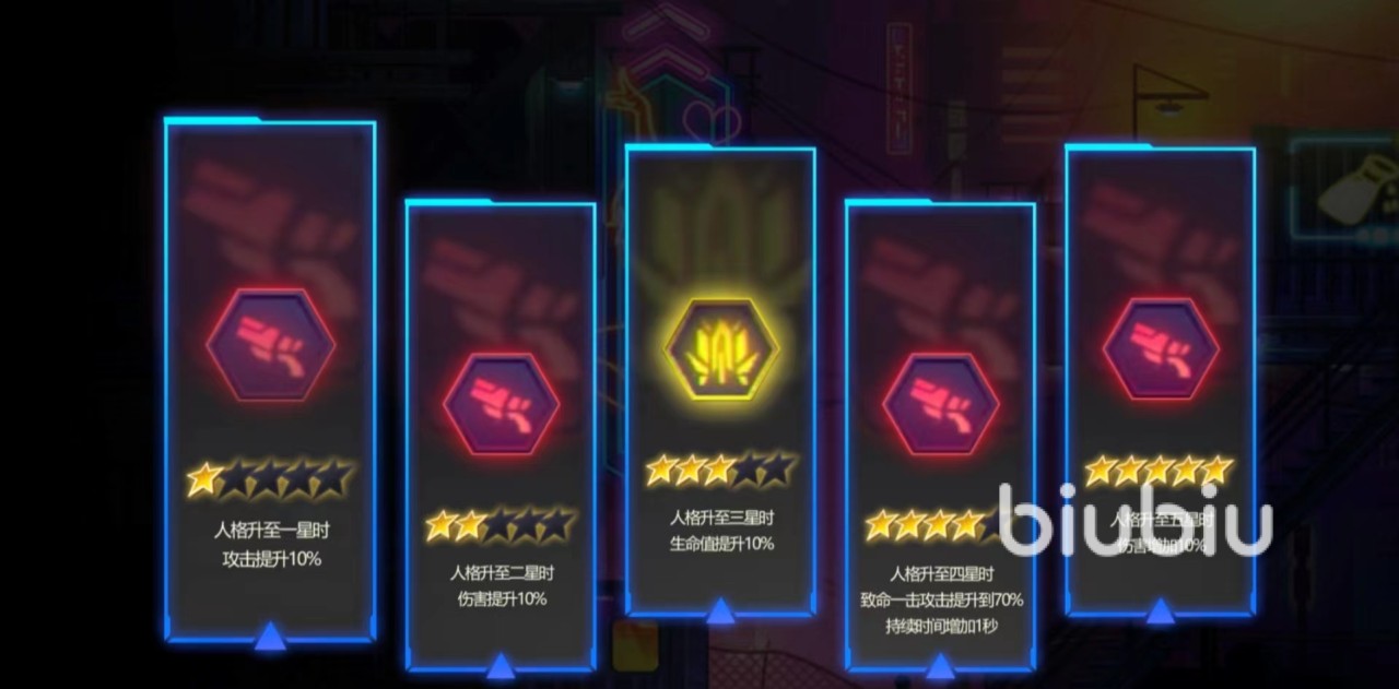 最后古尼沙解锁天赋后,除了攻击力和伤害加成外,还有10%的生命值加成。古尼沙作为一个脆皮,生命值的百分比加成并不高。且古尼沙自带无限攻击距离和锁敌的机制,可以通过站位来获得不错的输出环境。即使输出环境不好也需要其他人格保护,10%的生命值加成依然作用不大,不过聊胜于无,只是生命值加成换成其他属性的加成就更好了。