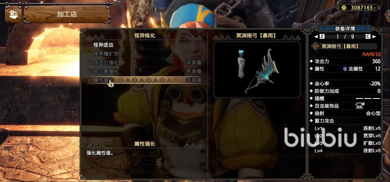 不同的武器在开槽后能够添加的属性词条也不同,这一点需要自己去尝试,例如小编选择了这把炎火杰刃,在开槽后可以添加攻击力强化、会心率强化、锋利度强化和百龙装饰槽扩充等。接下来就讲一下常用的怪异炼化素材该怎么获得。