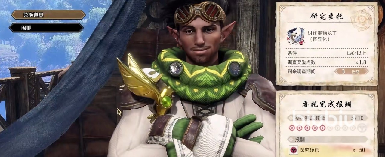 当下载更新完成之后,可以进入游戏找到研究员巴哈里,和他交谈一下就能够接取到第一次怪异探究任务。而之后的怪异探究任务是需要触发几率的,玩家需要完成怪异调查任务或者是自由讨伐奖励,就有几率触发怪异探究任务。