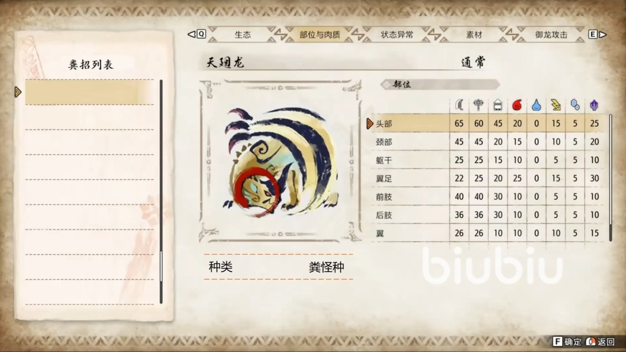 根据天廻龙的肉质特点,先要把狩猎思路确定下来,小编建议的是如果有位置就直接攻击头部,如果没有位置就选择攻击前肢或者是后肢。天廻龙的发怒状态是两个阶段,第1个阶段是在触发狂吼之后会进入愤怒状态,第2阶段是会飞到空中,然后再进入愤怒状态。而且天廻龙的吐息和突击比较频繁,在侧面和后背攻击会比较安全。