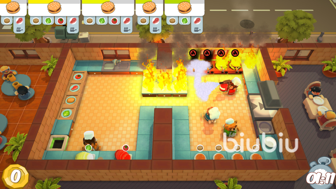 1~4名玩家在胡闹厨房游戏中开始多人混战,其实也算得上是合作,在各种移动的厨房上,需要完成客人爆发前的各种美味订单,除了准备菜刀和厨师之外,还要准备一颗可以处理各种紧急情况的心,轻度的操作可以特别配合两个人的默契程度,但这款游戏为什么被玩家们戏称为分手厨房,因为没有耐心的话是很容易吵架的。