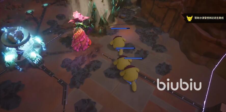 当玩家们在于洛哈娜的战斗关卡当中,将其伤至残血的时候,就会触发沙漠雪怪的剧情。在这一阶段,玩家们需要保护好三名沙漠雪怪顺利的进入到指定地点。这期间敌人会发动猛烈的进攻,玩家们需要想办法吸引敌人的火力,一旦三名沙漠雪怪被敌人给击杀,那么该任务就会直接失败。