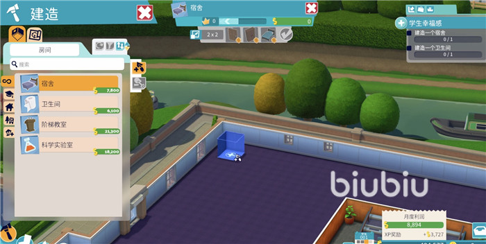 因此,建议新手玩家在前期的时候,不是任务要求一定要完成的话,那么不要建造太多的阶梯教室,也不要放置所有的物品进去,以免出现钱不够花的情况,最好的处理方法就是等后期赚够钱了,再添加自己喜欢的物品进去。