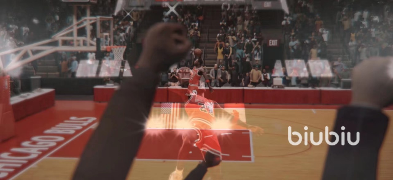 4.下-吊框,吊框是一个非常帅气的动作,只要玩家长按下键,就可以一直掉在篮筐上。游戏甚至在这里加入了超拟真的物理引擎,玩家可控制角色平衡,用篮筐做起引体向上,想必这是很多玩家都难以拒绝的操作吧。