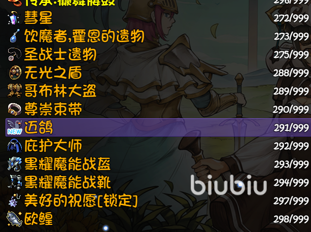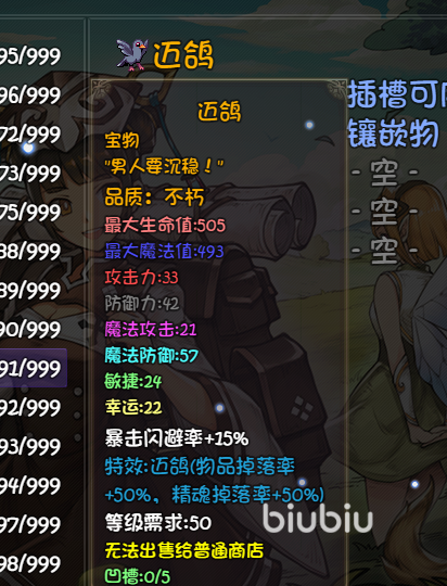 迈鸽,和上面的哥布林大盗以及欧皇一个样子,加物品掉率以及金钱掉率,没啥好说的,穿就完事了。