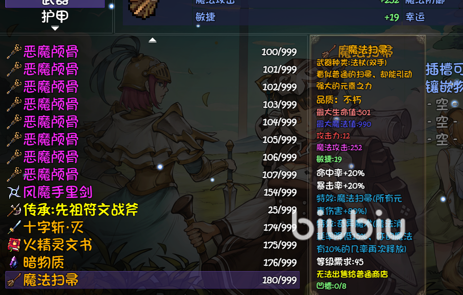 副手武器欧皇,和上面的哥布林大盗很像,加20的物品掉落率,建议和幸运女神以及哥布林大盗搭配使用,效果更佳。