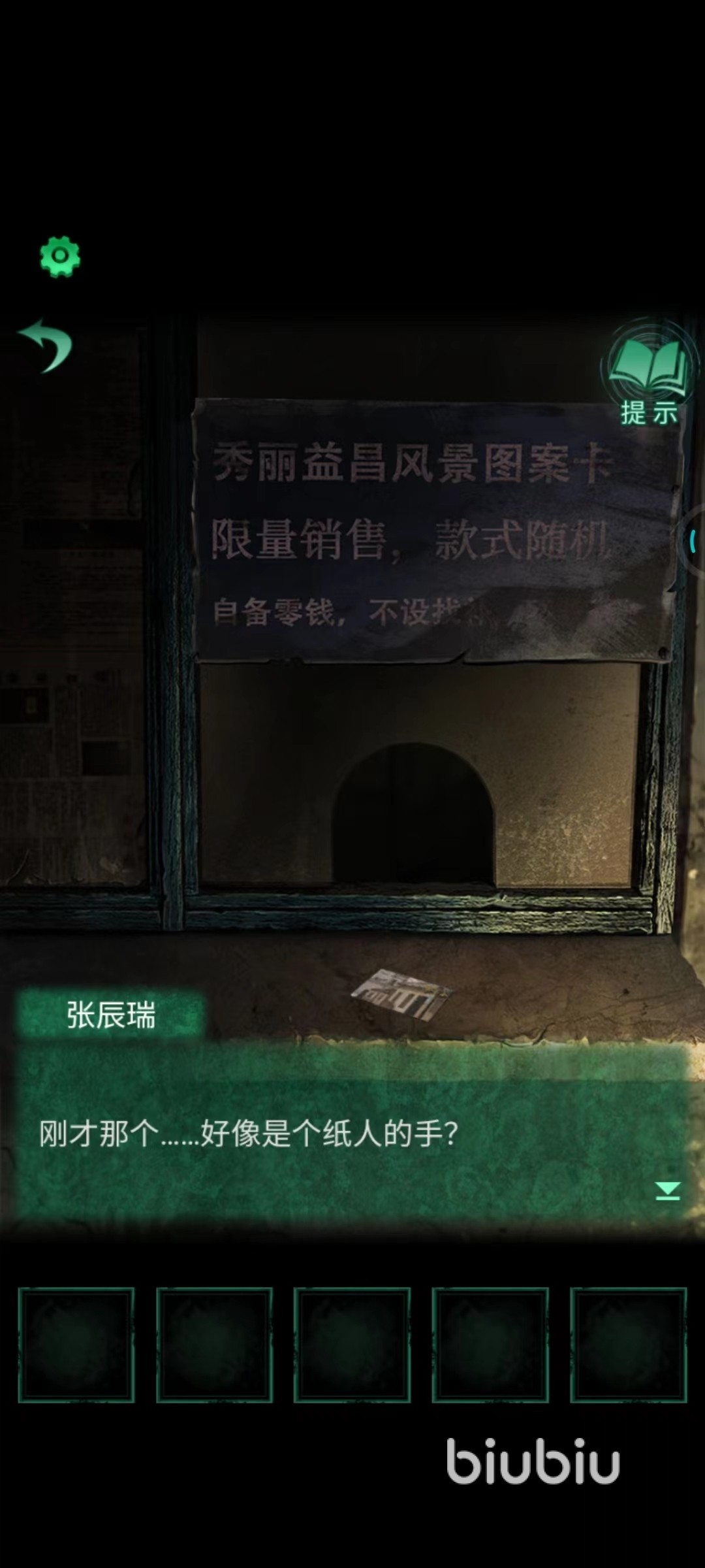 在从公交车投币箱中获得【纸钱】道具后,我们需要离开公交车,来到位于公交车前的售票口处。在物品栏中点击使用【纸钱】道具,并将纸钱放置在售票口前的窗口处。随后从窗口中会伸出一只纸人的手取走纸钱,并递给玩家一张【公交卡】,公交卡上的画看起来像是某个风景的局部。