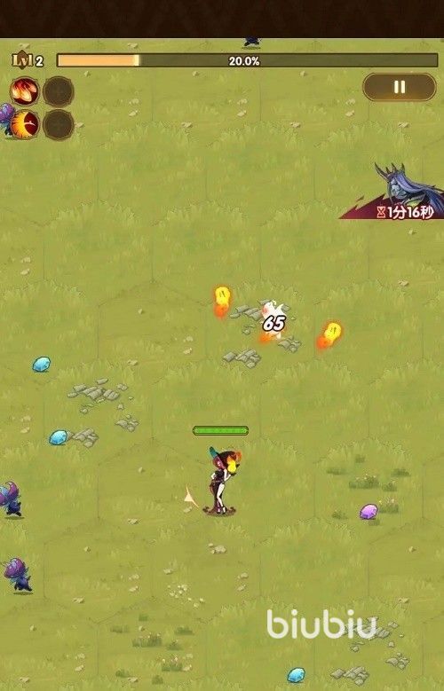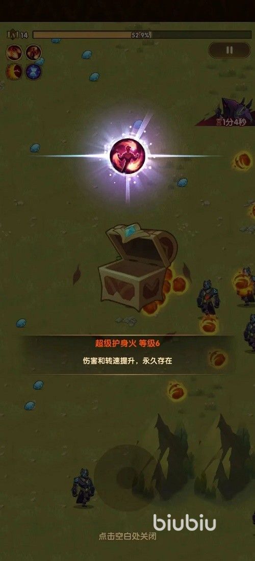 接下来简单介绍一下活动的界面,在最上方那一个是经验条,在地上钻石代表经验,紫色的钻石是最好的品质。还有一个瓶子可以将遗漏的资源收集起来非常重要。接下来就是打boss了,当击败boss后箱子可以开出6级。