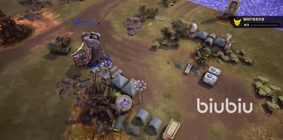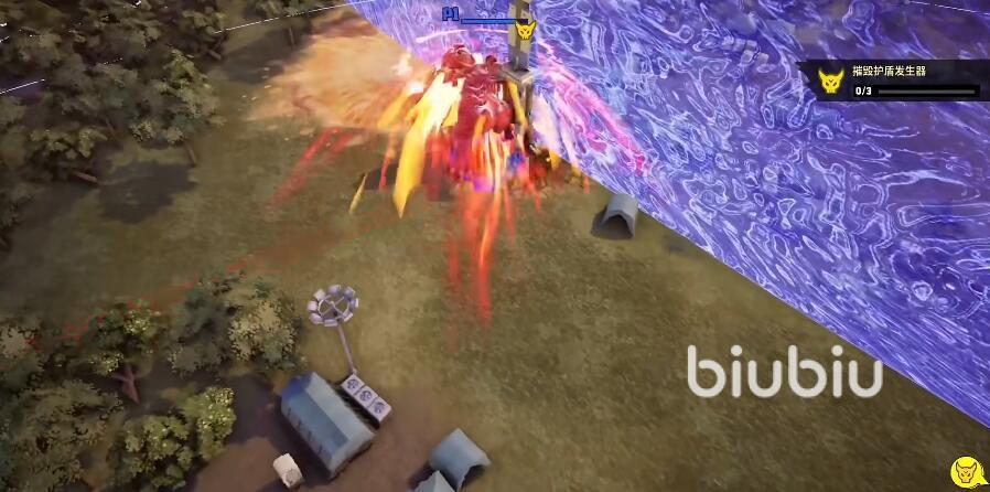 同时,大家还可以将残血的敌人抱起来,然后仍在护盾发生器上就可以成功的将第一个进行破坏。在后续的战斗当中,大家都可以这样利用敌人的坦克来进行战斗,因为扔出去的敌人坦克会发生二次爆炸,对护盾发生器或造成一共两段伤害。多使用几次,就可以成功的将第二个护盾发生器完全破话掉。