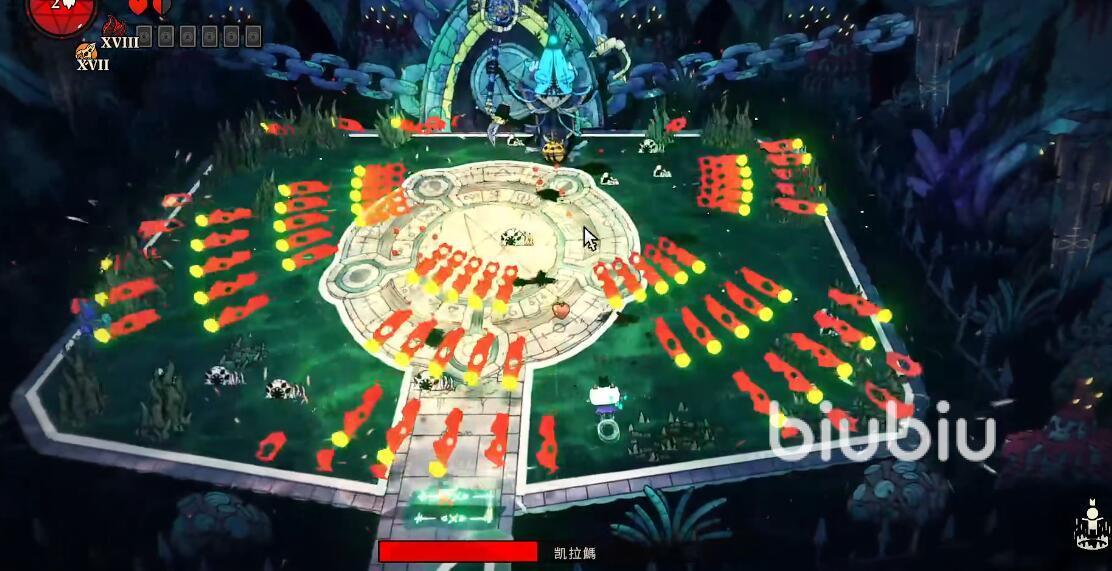 此时,玩家们可以直接使用武器来快速进攻,搭配上武器的蓄力攻击,可以让凯拉鰢在这一回合的战斗当中丢失掉部分生命值。随后,凯拉鰢的技能会出现变化,发射的弹幕将毫无章法,不过整体的范围要比之前的小一点,玩家们只需要移动到地图的角落处进行躲避即可。不过,该阶段敌人会召唤出大量小怪来辅助进攻。