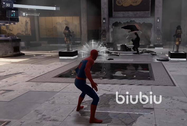 首先,玩家们需要了解到敌人得到进攻方式,该BOSS的自身防御力非常的强大,玩家们是用普通攻击很难造成有效的伤害,并且敌人也非常擅长撞击,躲避不及时的话,蜘蛛侠将承受大量伤害。同时,敌人也会在近身战斗的情况下,使用出各种擒抱技能对主角发动进攻。玩家们首要的任务就是,限制敌人的输出。