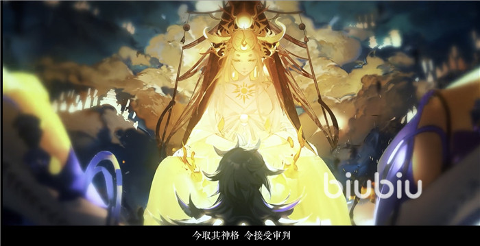 但在这个PV中,有一个审判,在一个巨大的天平上进行称重,一边放的是八岐大蛇的神格,另外一边放的是天照的神格,八尺镜,如果八尺镜的重量大于大蛇的神格,那么就会判定无罪,因为神格比天照低,天照愿意庇护,但如果神格的重量大于八尺镜,那么就会判定为有罪,会立刻将其毁去,让它灰飞烟灭。