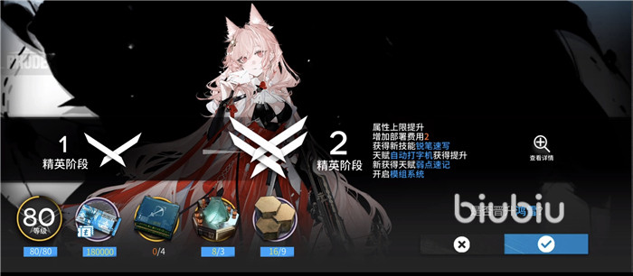 目前,当鸿雪的等级达到了80级以后,大家只需要再攒够18万的龙门币、4个狙击双芯片、3个晶体电子单元和9个提纯源岩,就可以为鸿雪升级到精英阶段2了。