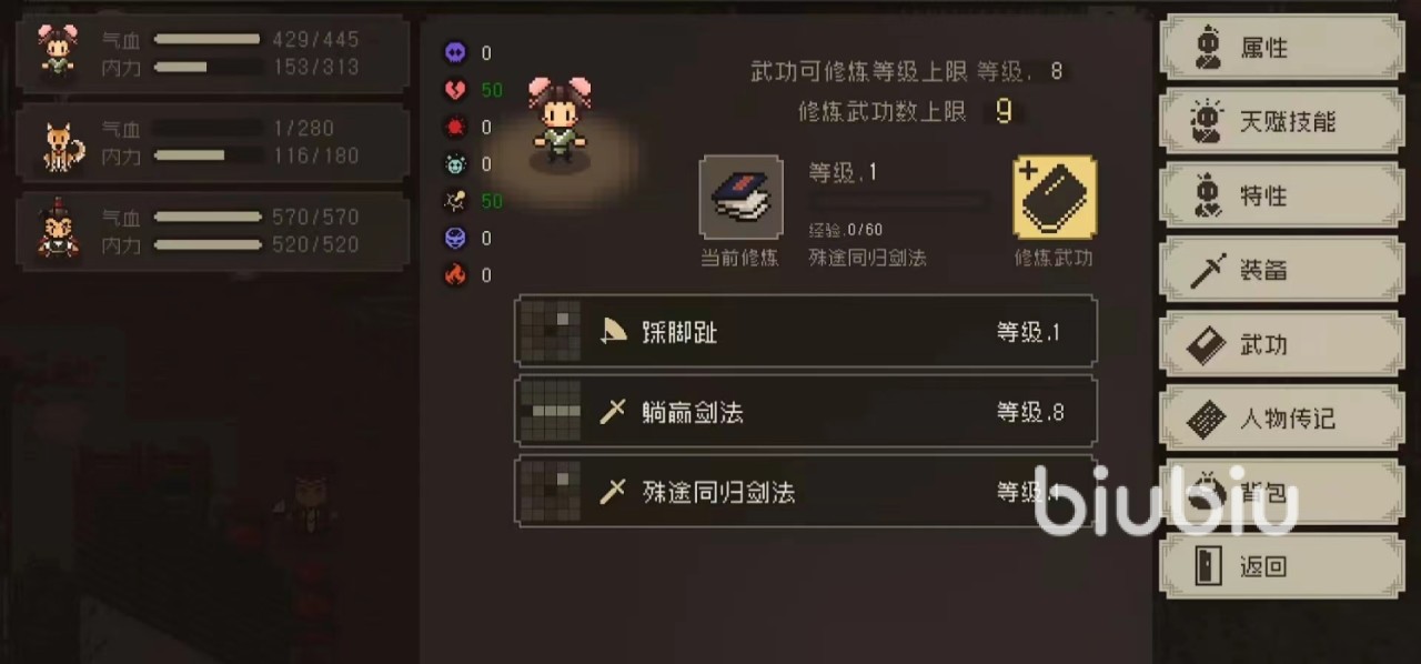 玩家想要习得音律武学、剑法、指法有着悟性属性的要求,角色悟性值越高,学习武功的速度更快。