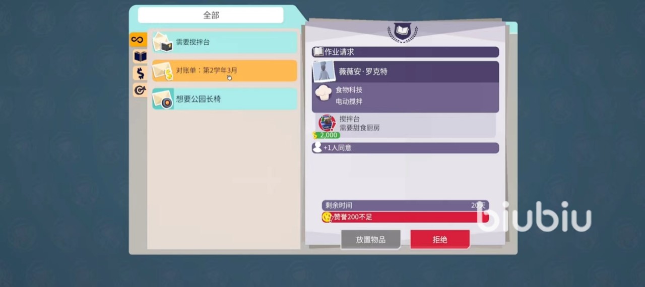 大厨实际是指美食学院的学生,游戏过程中他们会把个人意愿通过信封的形式邮递给玩家,玩家在左下角的信封的功能出打开就可以查看到,随便选择20个学生的个人目标并满足他们即可。