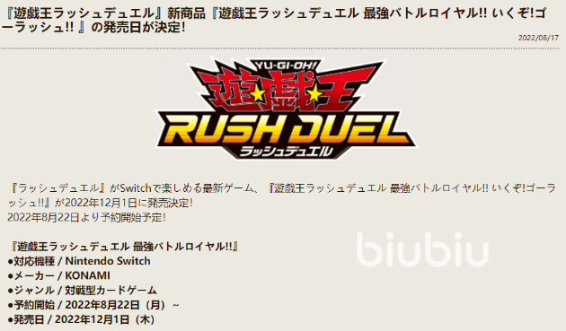 游戏王RushDuel什么时候发售 ns游戏王发售时间价格一览
