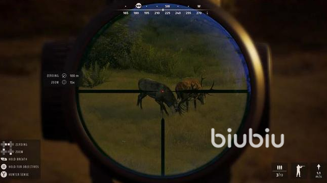 这款游戏主打的就是真实的场景设定,让我们可以沉浸在这大自然中,在美国与欧洲的广阔世界内,会有这么一片森林,里面会有很多的动物存在,我们需要狩猎他们完成各种冒险玩法,不同的动物需要用到的武器都是不一样的,要根据自己的实力选择对应的猎物。