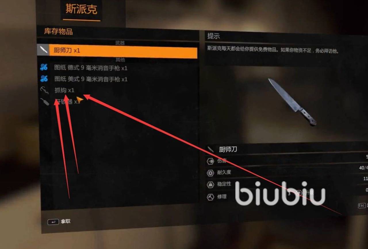 升级完技能后,我们需要找到军需官,在军需官处可以领取抓钩,只有升级完技能后,才能去军需官处领取。军需官在贫民窟大厦的一楼和旧城区的大学城。获取勾爪后,将其放在装备栏里并且按键选择后,对准远处位置就可以按鼠标中键使用了。