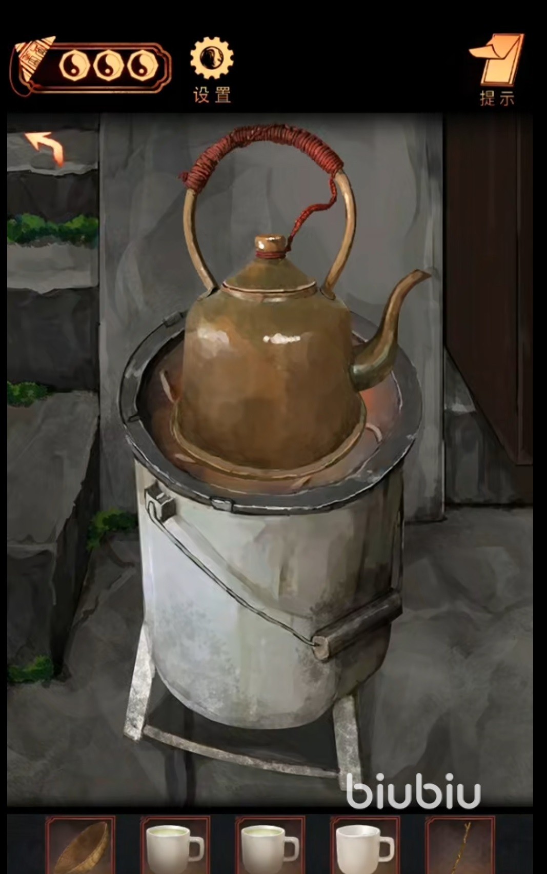 首先在屋子的右边,拿起一壶水,然后将一壶水放到煤炉上,这样就可以得到一壶开水。根据茶杯的提示,可以打开柜子取走两个杯子。和屋子里的客人对话,需要泡铁观音和龙井这两种茶,拉开屋子里的帘子观看茶册,可以得知铁观音和龙井的泡茶方法。