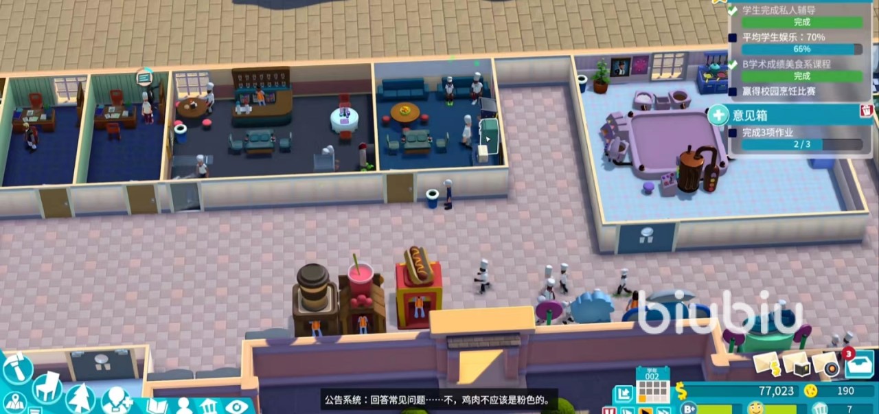 此外教室一定要修在学生会和餐馆的边上,这几个场景是学生最喜欢去的地方,减少他们走路的时间,还能避免他们迷路。此外其他建筑图书馆、阶梯教室同理,所以教室可以修在学校的最中间,其他建筑根据学生的喜好程度分别修在教室的边上。