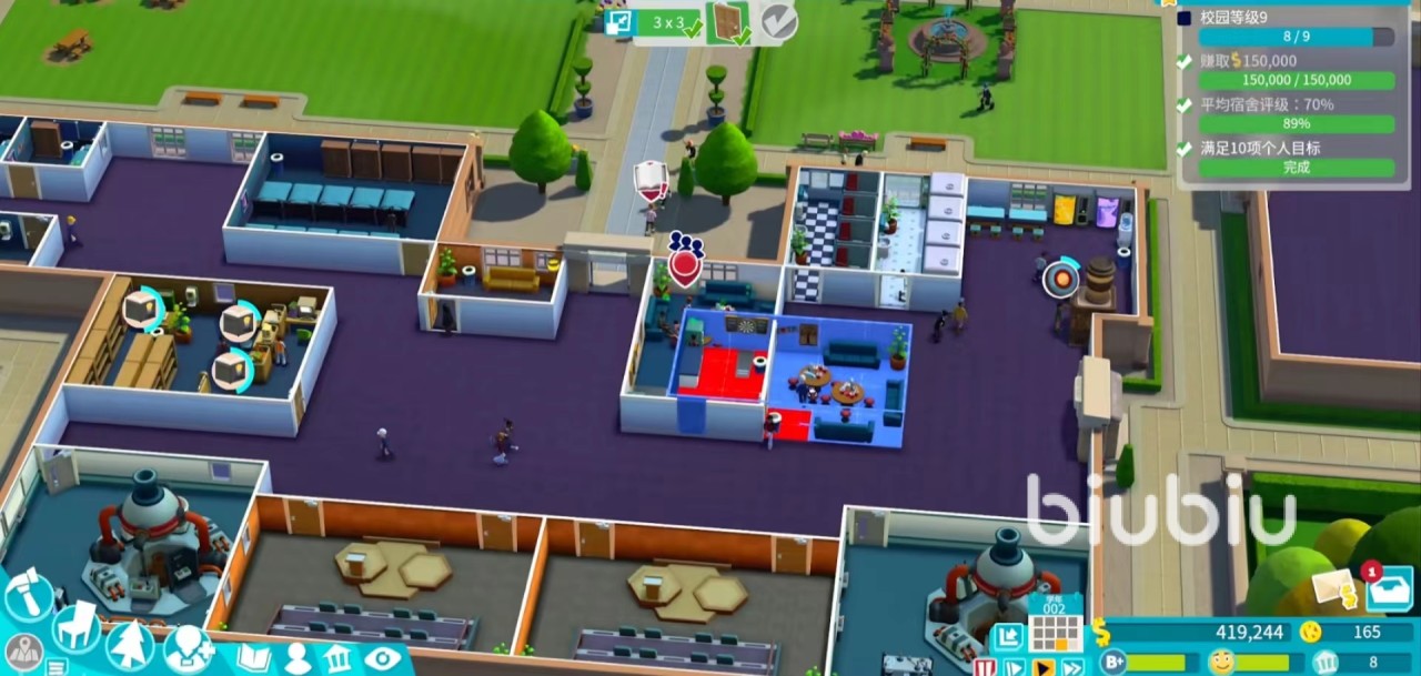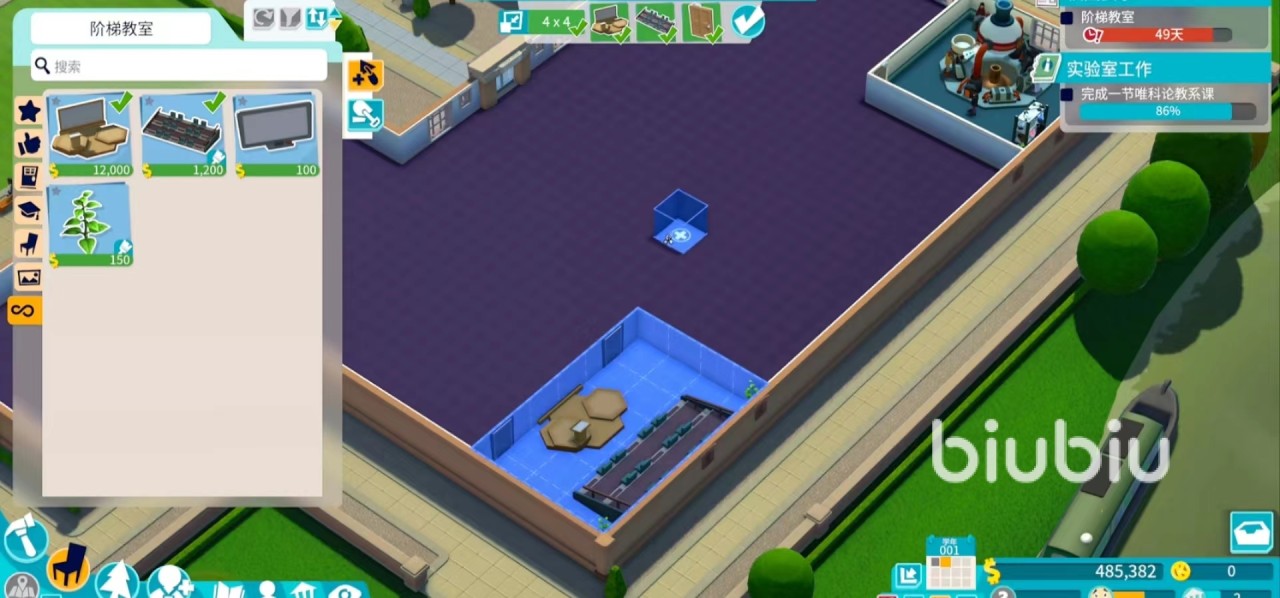 虽然玩家可以自定义教室的大小,但是不建议玩家节约钱就全建最小的教室。后期玩家资金充足以后,可以在教室内摆上各种各样的物品,来提升校园的威望。